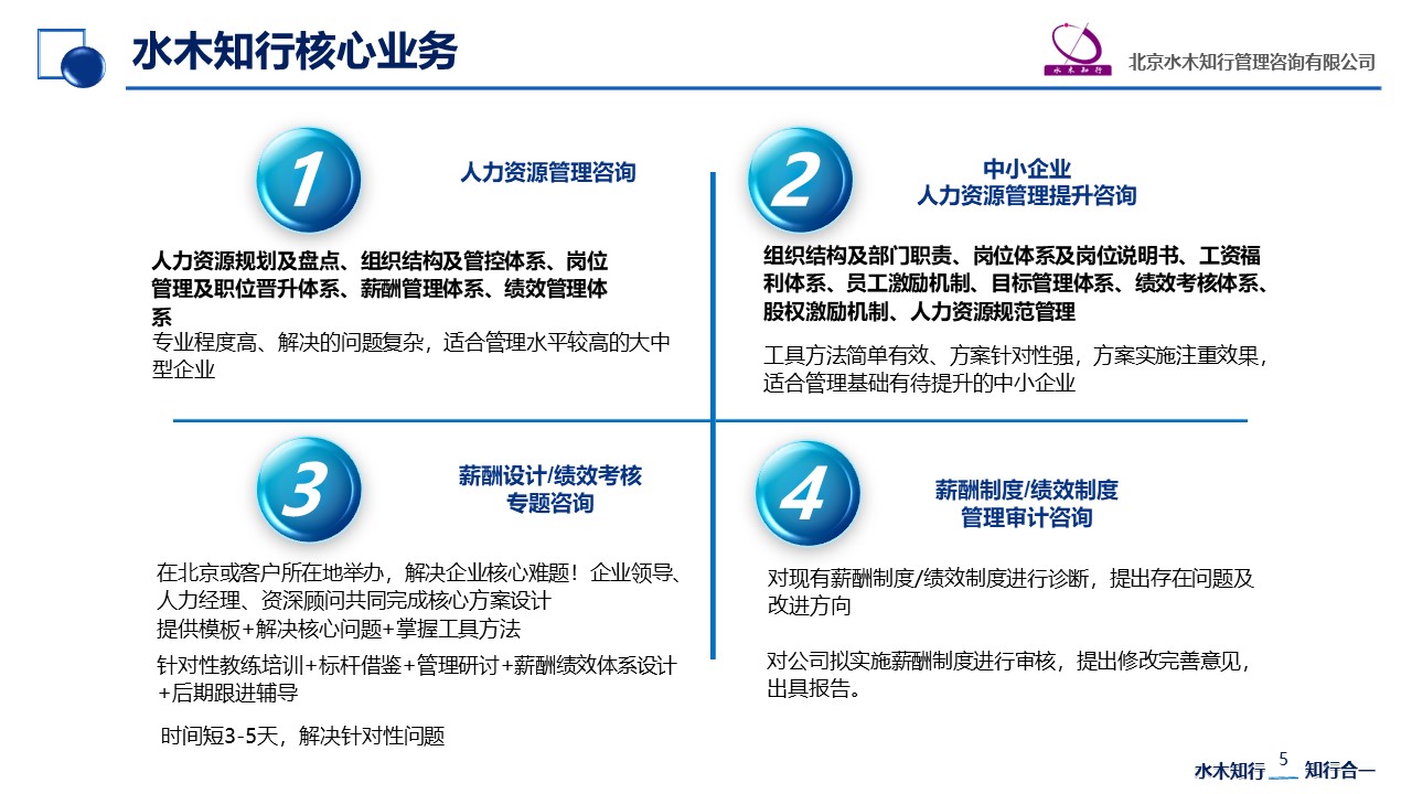 北京水木知行管理咨詢有限公司(www.bjsmzx_com.qclys.cn)專注提供人力資源管理咨詢、人力資源管理培訓、人力資源招聘咨詢、人力資源獵頭服務業務;咨詢業務范圍包括組織結構與管控體系、崗位管理體系、薪酬管理體系、績效管理體系,咨詢形式包括全過程咨詢、教練式咨詢和特訓班;培訓業務包括企業基礎管理...[詳情]